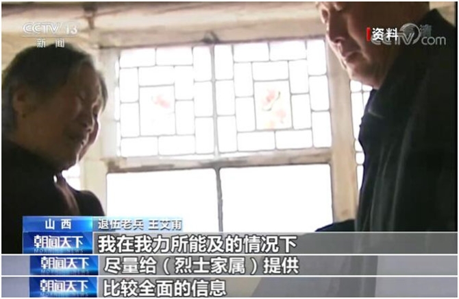 1996年至今,王艾甫已經(jīng)將84張?zhí)瓚?zhàn)役陣亡將士通知書中的半數(shù)送回烈士親屬手中,他告訴我們,在漫長的尋親路上,他并不孤單,許多好心人、志愿者和媒體紛紛伸出援手。為烈士尋親不僅是讓英靈回歸故里,更重要的是對(duì)烈士精神的肯定與褒揚(yáng)。接下來,他準(zhǔn)備做一個(gè)網(wǎng)站,繼續(xù)幫烈士尋親,對(duì)于這件事他很有信心。