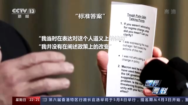 路透社記者注意到,拜登手里拿著的一張小紙條,標(biāo)題為“有關(guān)普京問題強(qiáng)硬回答的要點”。