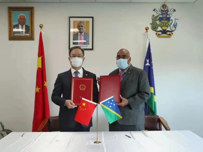 ▲3月30日,中國駐所羅門群島大使和所外交與外貿(mào)部常秘草簽了中所安全合作框架協(xié)議。(圖片源自中國駐所使館網(wǎng)站)