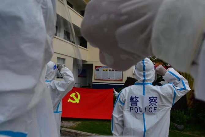 “疫情任務(wù)在哪里,黨員就戰(zhàn)斗在哪里。”面對(duì)疫情嚴(yán)峻考驗(yàn)和重大風(fēng)險(xiǎn),所長(zhǎng)戈堯帶領(lǐng)全體黨員沖鋒在前,面對(duì)黨旗和警旗,他們由衷發(fā)出自己的錚錚誓言,在疫情防控一線亮身份、當(dāng)先鋒,爭(zhēng)當(dāng)堅(jiān)守崗位履職盡責(zé)的表率,書寫移民管理警察忠誠(chéng)本色,他們用不分晝夜的堅(jiān)守行動(dòng)詮釋“對(duì)黨忠誠(chéng)、服務(wù)人民、執(zhí)法公正、紀(jì)律嚴(yán)明”的錚錚誓言。
