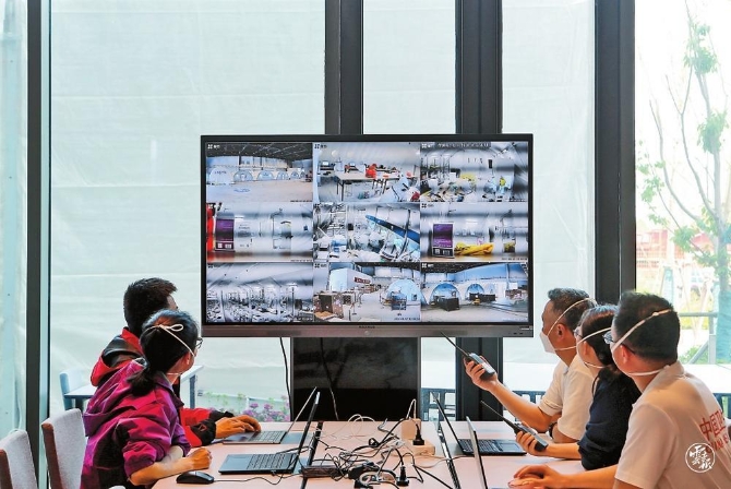 11時(shí)45分,隊(duì)員們有序進(jìn)入6座氣膜艙室。記者在紅線(xiàn)外圍看到,核酸檢測(cè)樣本送達(dá)實(shí)驗(yàn)室后,經(jīng)初步消殺在樣本接收區(qū)進(jìn)行交接,包括進(jìn)一步消毒、掃碼錄入等。準(zhǔn)備完成后,樣本分批送入氣膜實(shí)驗(yàn)室,進(jìn)行試劑添加、核酸提取、擴(kuò)增檢測(cè),出具最終結(jié)果,形成標(biāo)準(zhǔn)化、規(guī)范化、自動(dòng)化核酸檢測(cè)流水線(xiàn),大大提升了檢測(cè)效率。