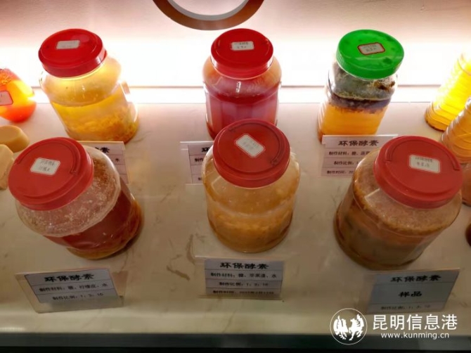 在體驗(yàn)館內(nèi),最吸睛的還屬回收廚余垃圾制作環(huán)保酵素的展區(qū)。廚余垃圾泛指易腐爛的、含有機(jī)質(zhì)的生活垃圾。讓廚余垃圾變廢為寶的妙招就是“環(huán)保酵素”。將紅糖、廚余垃圾和水按一定比例放入塑料桶里,3個(gè)月后就會(huì)變成具有抗氧化、抑菌、凈化空氣等作用的環(huán)保酵素,再經(jīng)進(jìn)一步加工,即可成為洗手液、洗面奶、香皂等日常生活用品。