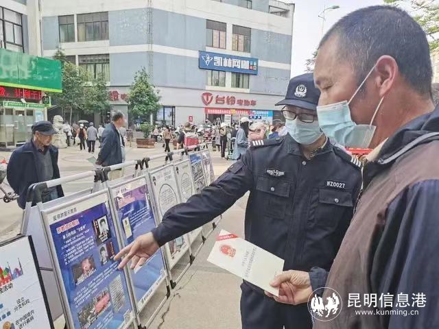 昆明信息港訊 記者合宇聰 4月15日是我國(guó)第7個(gè)全民國(guó)家安全教育日,嵩明縣公安局聯(lián)合嵩陽街道到海宇花園小區(qū)小廣場(chǎng)開展全民普法宣傳教育。