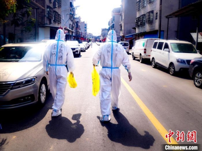 志愿者支援七都鎮(zhèn)疫情防控。 國網(wǎng)寧德供電公司 供圖