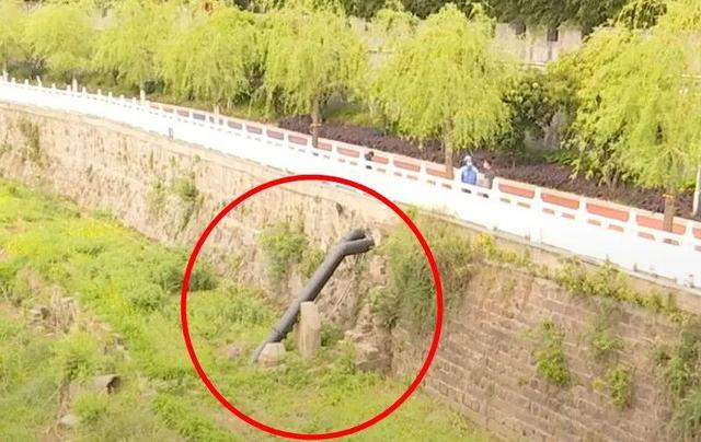 河邊人行道離河岸還有四五米落差,朝澤坤當(dāng)時沿著管道向下爬