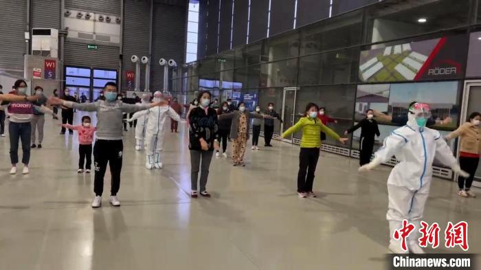 “我們剛進艙的時候,發(fā)現(xiàn)大多數(shù)病人都是躺在床位上,情緒狀態(tài)都不是很好。”到了晚飯時間,王雯觀察到有兩三位病人在走廊內(nèi)自己活動筋骨,“我就想到了自己在原來的醫(yī)院,每次晚飯后也會帶領患者們做健骨操鍛煉身體?!庇谑?她找了個小喇叭,號召大家和她一起活動,鍛煉身體。王雯介紹,健骨操能起到鍛煉肌肉,增強身體協(xié)調(diào)性的作用?!白铋_始是三四十個人(參加),現(xiàn)在已經(jīng)有一百多人了。”