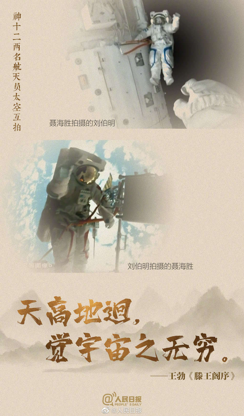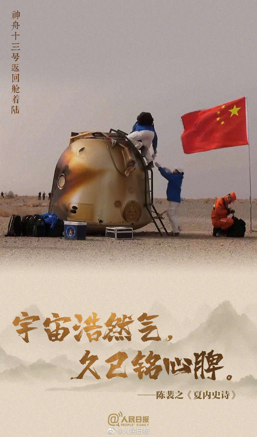16日,神十三乘組順利返回地球。古往今來,無數(shù)文人墨客寫下了對宇宙的浪漫想象,當(dāng)“宇宙之無窮”映入眼簾,當(dāng)“手可摘星辰”不再夸張,當(dāng)“大鵬一日同風(fēng)起,扶搖而上九萬里”成為現(xiàn)實(shí),浩瀚宇宙見證著中國人的浪漫。