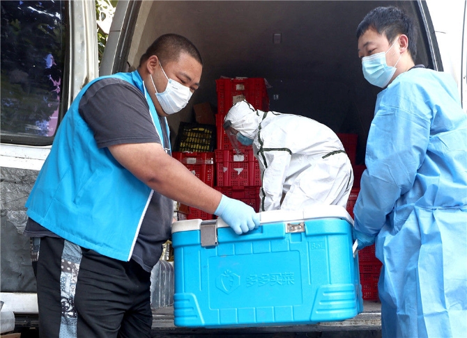 “送到社區(qū)的物資,我們按照政府配送、團(tuán)購物品和居民個人訂購物品等分類,分別由志愿者安排送至樓棟門口,再由樓組長或群組志愿者為居民配送到家門口?!鄙坨髡f。