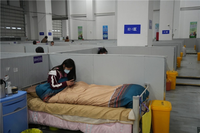 4月16日,患者在上海臨港方艙醫(yī)院休息。新華社記者 楊有宗 攝