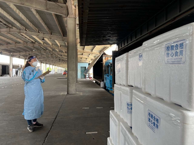 4月15日15時(shí)32分,西藏支援上海的47507次保供物資專列經(jīng)過113小時(shí)、4600多公里的長途旅程,從西藏自治區(qū)日喀則西站抵達(dá)上海北郊站。該趟專列由8節(jié)貨車編組而成,100噸牦牛肉、3000噸天然飲用水等民生保障物資在快速卸車后,被短駁送往寶山區(qū)冷鏈城配中心等倉儲(chǔ)點(diǎn)。