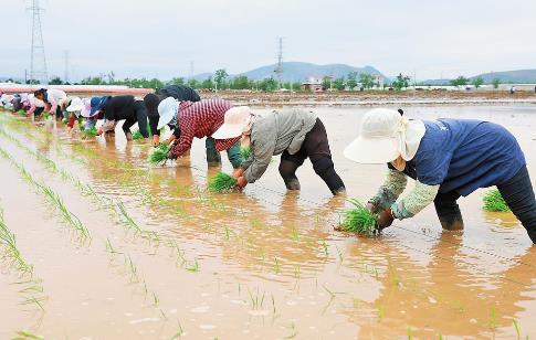 80余名村民熟練地將秧盤從溫室移出,送入試驗田,再進(jìn)行定距、分秧、插秧。近日,在紅河哈尼族彝族自治州蒙自市草壩鎮(zhèn)富民村四組,袁隆平超級雜交水稻“瑋兩優(yōu)8612”“云秈650”等育秧完畢,如期進(jìn)行移栽。