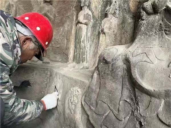 1986年,中國文化遺產(chǎn)研究院、中國地質(zhì)大學(xué)、龍門文物保管所共同研究制定“龍門石窟保護(hù)維修規(guī)劃”。經(jīng)國家文物局批準(zhǔn),1987年開始實(shí)施“龍門石窟綜合治理工程”。之后30余年,劉建社除了刮風(fēng)下雨,“年年都在龍門石窟干”。