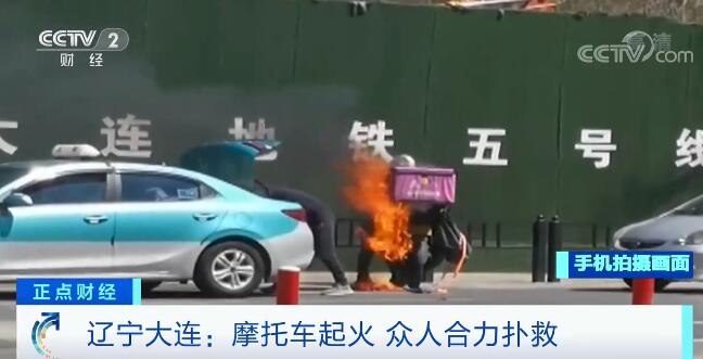 央視網(wǎng)消息:日前,在遼寧大連中山區(qū)的一個(gè)路口附近,一位外賣(mài)小哥在等紅燈時(shí)摩托車(chē)突然起火,火勢(shì)迅速蔓延。摩托車(chē)附近的出租車(chē)司機(jī)發(fā)現(xiàn)后,迅速下車(chē)到后備箱取出滅火器,隨后,其他司機(jī)也拿來(lái)滅火器參與撲救。在眾人合力下,火勢(shì)很快被撲滅。