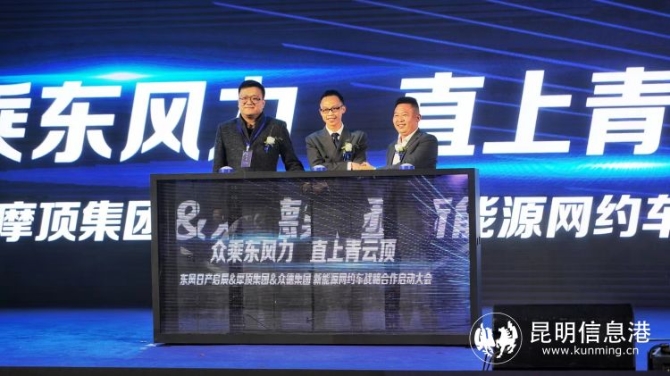 昆明信息港訊 記者上官艷君 4月20日下午,新能源網(wǎng)約車戰(zhàn)略合作大會在昆召開,東風(fēng)集團(tuán)、摩頂新能源集團(tuán)、眾德集團(tuán)共同發(fā)起本次會議并簽訂戰(zhàn)略合作協(xié)議。