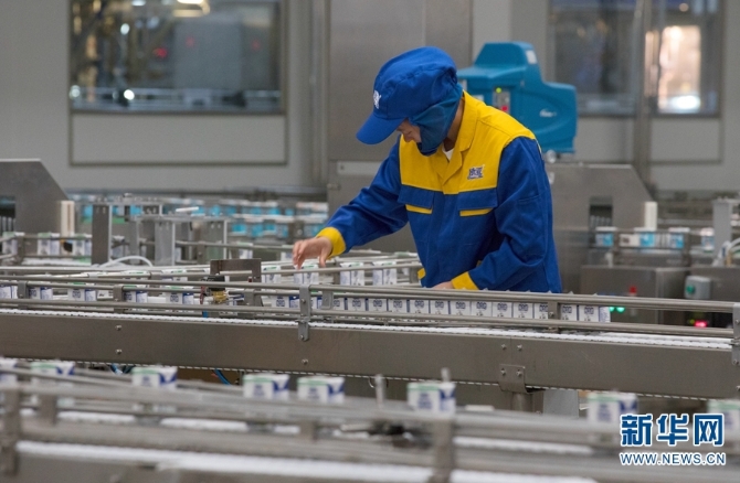 乳品包裝線(攝于4月2日)。(新華網(wǎng) 趙普凡 攝)