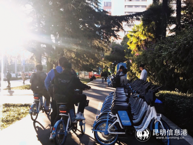 東風(fēng)廣場(chǎng)地鐵口附近,騎哈啰的昆明人
