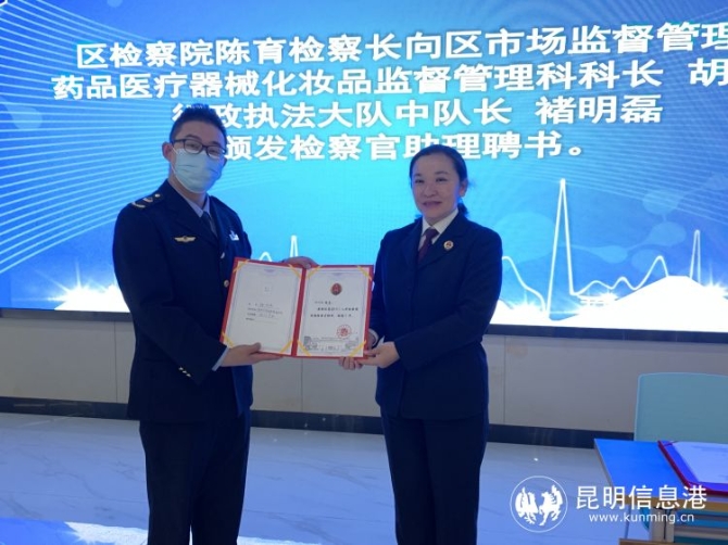 活動(dòng)現(xiàn)場(chǎng),區(qū)人民檢察院聘任區(qū)市場(chǎng)監(jiān)管局兩名工作人員兼任檢察官助理,為檢察機(jī)關(guān)辦案提供專業(yè)支持,并向兩位專業(yè)人員頒發(fā)聘書,以提高知識(shí)產(chǎn)權(quán)執(zhí)法保護(hù)的專業(yè)化程度。