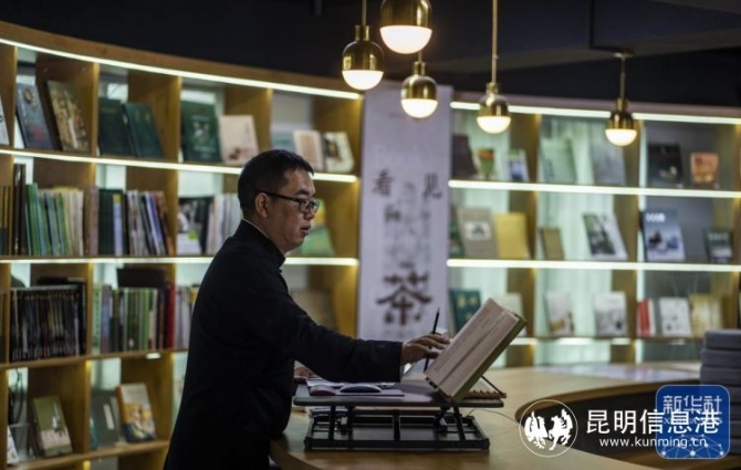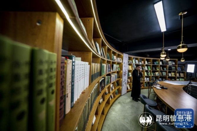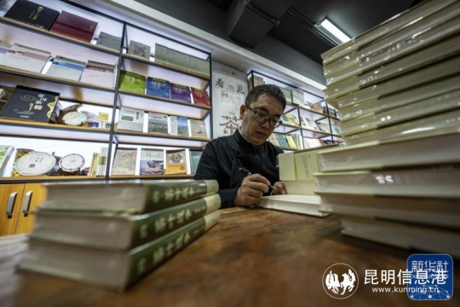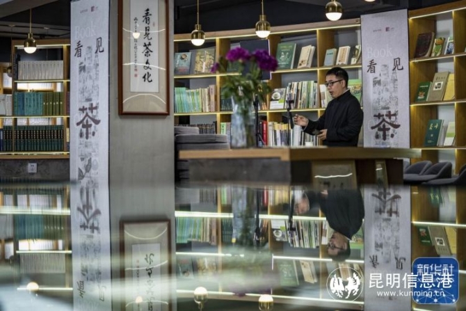茶文化學者周重林在昆明雄達茶城經營貓貓書店,店名來源于他的夫人。在雄達茶城,貓貓書店很有些名氣,因為書店里有5000多冊世界茶書、200多本珍稀古籍,他本人寫作的《茶葉戰(zhàn)爭》等數十本書也不斷充實著書店的書架。