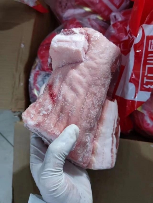 圖為居民反映存在問題的豬肉。(上海市公安局供圖)