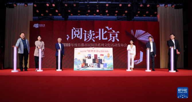 4月21日,嘉賓和讀者代表共同啟動“閱讀北京——2022年度首都市民閱讀系列文化活動”。新華社記者 殷剛 攝