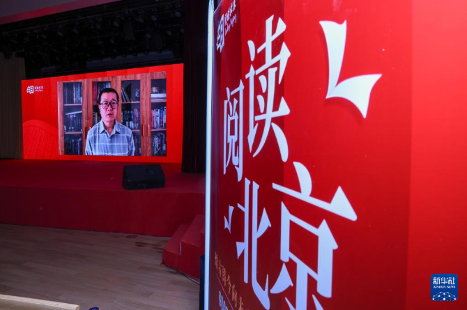 這是4月21日,作家劉慈欣在發(fā)布會上通過視頻向廣大讀者發(fā)出邀約——“一起閱讀、一起向未來”。新華社記者 殷剛 攝