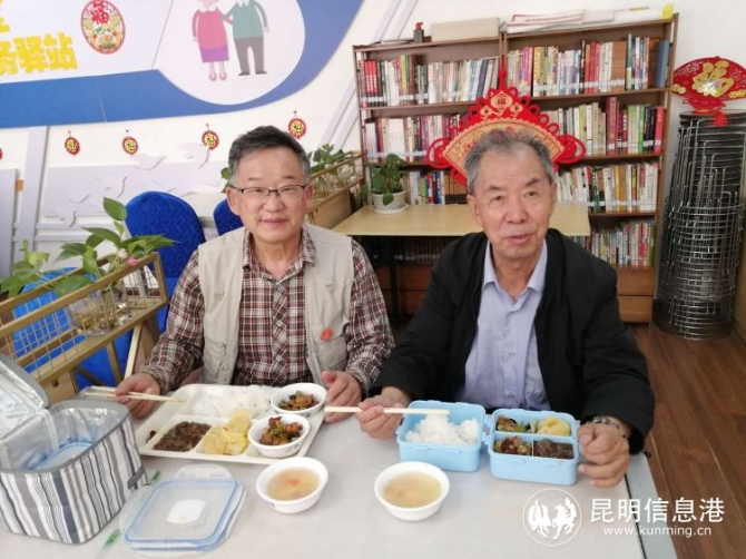 每天早晨,住在昆明市盤龍區(qū)鼓樓街道桃源社區(qū)80歲的薛禎老師都會到社區(qū)幸福食堂吃早餐,一碗熱氣騰騰的米線,喚醒了老人幸福美好的一天?!白詮挠辛诵腋J程?,每天我再也不用操心自己一個人做飯的問題了,營養(yǎng)健康可口的飯菜,便宜又方便,大家在這里邊吃邊聊,熱熱鬧鬧,比自己一個人在家吃飯開心多了?!毖蠋熞贿叧灾?,一邊贊不絕口。