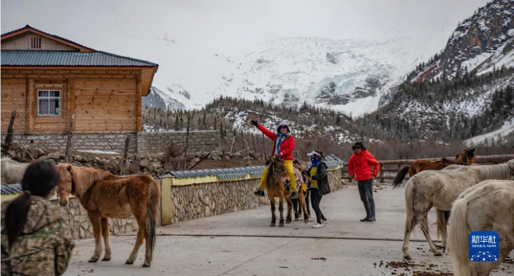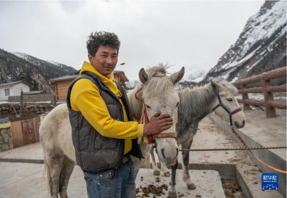 新華社拉薩4月24日電 記者格桑邊覺 孫非 “慢慢來,別摔了。”28歲的江阿羅布把一名游客扶上馬,帶他前往離村不遠(yuǎn)的米堆冰川參觀。