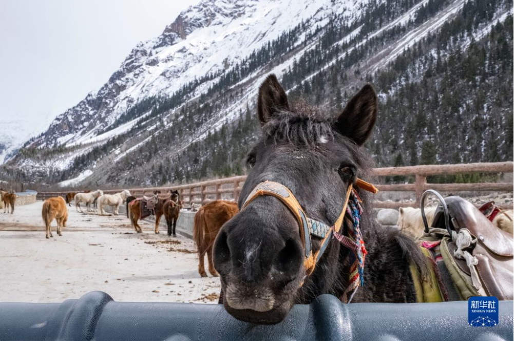 這是米堆冰川腳下用于接送游客的馬(4月23日攝)。新華社記者 孫非 攝