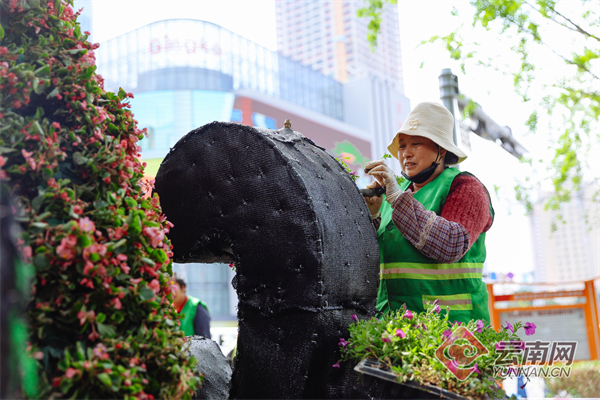 “我們從4月15日便啟動(dòng)了花卉景觀更新工作,總共投入600余人次,主要負(fù)責(zé)地鐵東風(fēng)廣場(chǎng)站站、昆明郵電大樓、交三橋、北站隧道附近的6個(gè)擺花點(diǎn)工作,預(yù)計(jì)在月底完成立體新景觀的更新,喜迎‘五一’。這一批夏季花卉的最佳觀賞期至少長(zhǎng)達(dá)3個(gè)月?!痹颇闲懒坝^工程有限公司管養(yǎng)部擺花點(diǎn)負(fù)責(zé)人余東文介紹道。