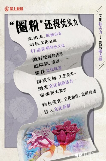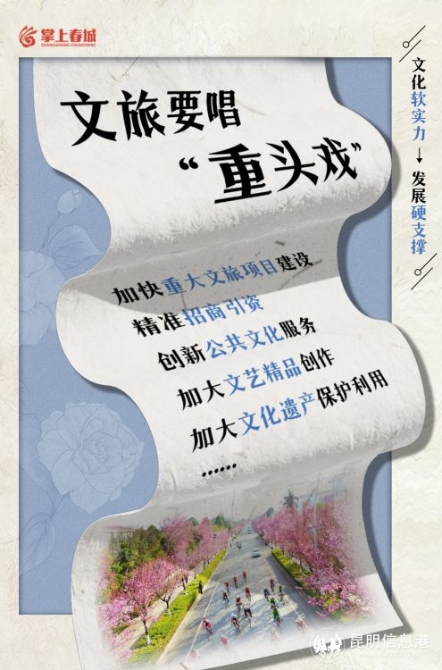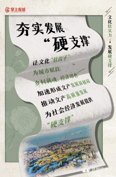 強省會的重要特征之一,就是綜合實力強。綜合實力分為兩方面,硬實力、軟實力。硬實力讓城市強大,軟實力是讓城市偉大。昆明要不斷提升文化軟實力、建設(shè)文化強市,為真正當好全省經(jīng)濟社會發(fā)展排頭兵提供“硬支撐”。(掌上春城評論員 畢群 易娜)