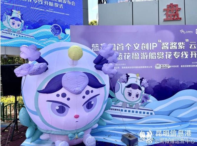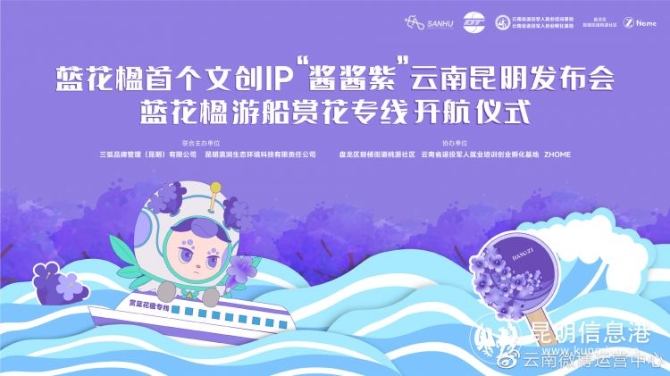 春末夏初,幾場春雨的沐浴下,藍花楹“高調(diào)盛開,為“無時不飛花”的春城帶了不一樣的藍紫色“花火”。4月25日,昆明盤龍江畔的桃源碼頭熱鬧非凡,藍花楹首個文創(chuàng)IP形象——“醬醬紫”正式對外發(fā)布。與此同時,四艘以“昆明八景”中的四景“云津”、“嵐浮”、“夜曼”、“疊翠”分別命名的純電動新能源游船,在全城矚目中開啟昆明首條藍花楹游船賞花專線浪漫之旅,邀廣大市民游客一起感受春城最夢幻的季節(jié)。