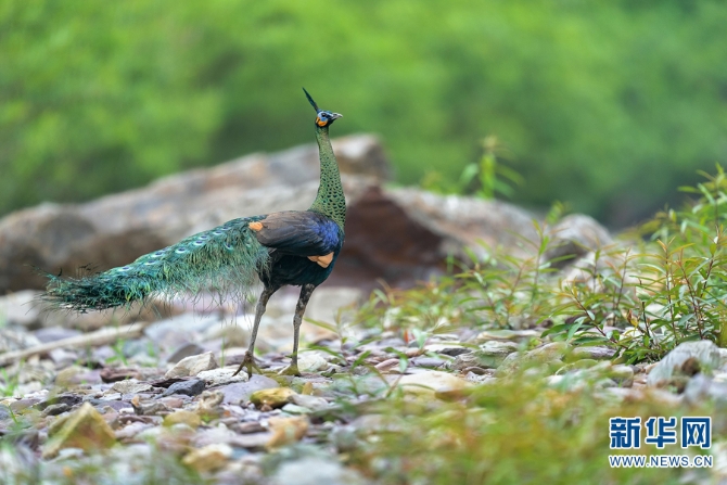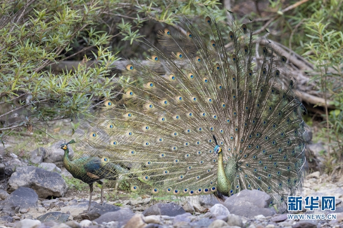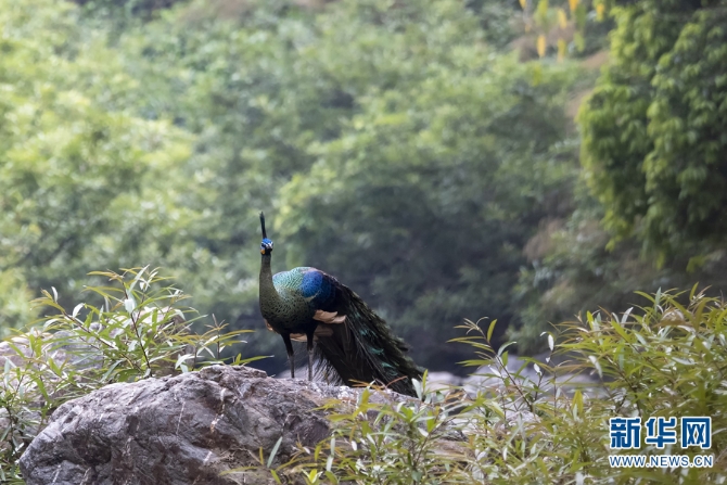 恐龍河自然保護(hù)區(qū)內(nèi)的綠孔雀(資料圖)。新華網(wǎng)發(fā)(張?bào)闳?攝)