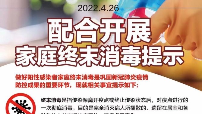 ? 做好陽性感染者家庭終末消毒是鞏固新冠肺炎疫情防控成果的重要環(huán)節(jié),為此,市環(huán)境整治消殺工作專班、市愛國(guó)衛(wèi)生運(yùn)動(dòng)委員會(huì)辦公室、市疾病預(yù)防控制中心、市健康促進(jìn)中心特別發(fā)布五點(diǎn)重要提示: