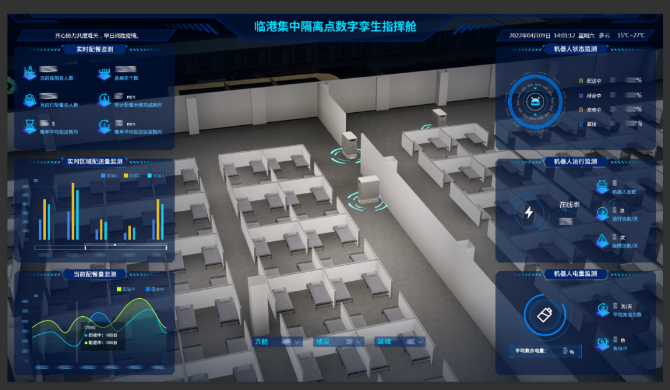 近300臺(tái)機(jī)器“小白”都有一個(gè)統(tǒng)一的“大腦”。通過激光SLAM(同步定位與建圖)技術(shù)精確重建室內(nèi)三維地圖,構(gòu)建1:1映射的虛實(shí)融合的數(shù)字孿生基座服務(wù),打造統(tǒng)一數(shù)據(jù)平臺(tái),實(shí)現(xiàn)對(duì)機(jī)器人的集中管控以及艙內(nèi)數(shù)據(jù)的實(shí)時(shí)監(jiān)測(cè),助力管理人員高效決策,支撐對(duì)臨港方艙的調(diào)度一體化、數(shù)據(jù)透明化的全過程高效管理。據(jù)悉,這是首次實(shí)現(xiàn)了方艙醫(yī)院場(chǎng)景下的多種類機(jī)器人的規(guī)?;?、體系化部署和數(shù)字孿生系統(tǒng)虛實(shí)融合的實(shí)戰(zhàn)應(yīng)用。上海臨港方艙醫(yī)院的相關(guān)經(jīng)驗(yàn)將復(fù)制推廣到國(guó)家會(huì)展中心方艙等其他方艙醫(yī)院。(總臺(tái)記者 竇筠韻)