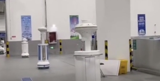 臨港方艙6號(hào)艙內(nèi)共部署了15臺(tái)消殺機(jī)器人,集成超干霧化消毒、紫外線消毒、等離子空氣過濾等多種方式,針對(duì)環(huán)境物表和空氣執(zhí)行自主移動(dòng)式多點(diǎn)高水平消毒,強(qiáng)化對(duì)醫(yī)護(hù)及患者的安全保障。