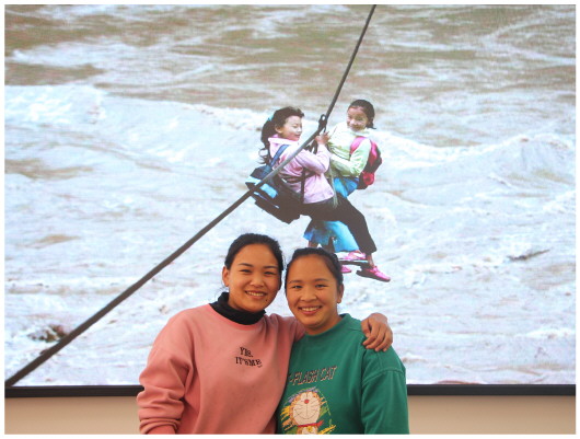 15年前,一位攝影師記錄下這樣一個瞬間:云南省怒江州的余春花和余才妹相互靠在一起,坐溜索過怒江,去對岸上學(xué),嬌弱瘦小的姐妹倆掛在鋼繩上,身下的江水波濤洶涌。畫面令人揪心和震撼,也引發(fā)了無數(shù)人的關(guān)注。