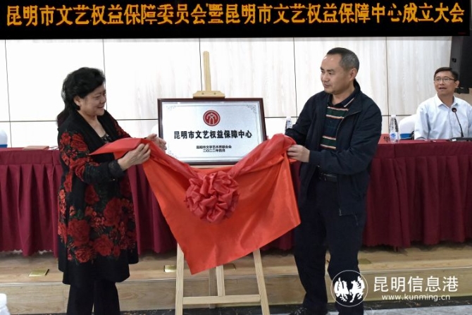昆明市政協(xié)原副主席、昆明市文聯(lián)原主席汪葉菊與云南省文聯(lián)辦公室主任王懷緒,共同揭牌“昆明市文藝權(quán)益保障中心”