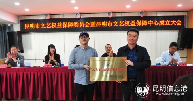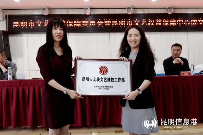 昆明市文聯(lián)黨組書記、主席陸毅敏向云南東南亞知識產(chǎn)權(quán)服務(wù)公司授牌“昆明市文聯(lián)文藝維權(quán)工作站”