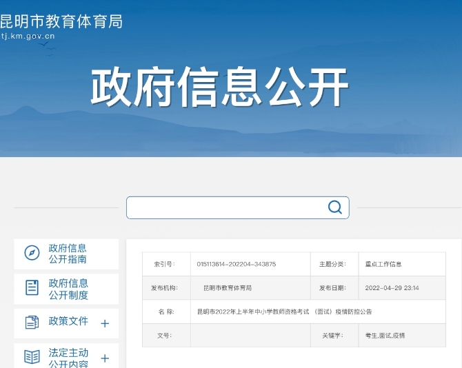 根據(jù)《云南省2022年上半年中小學教師資格考試(面試)公告》,結(jié)合省、市相關疫情防控要求,為做好面試期間的疫情防控工作,切實保障廣大考生和考試工作人員的生命安全和身體健康,現(xiàn)將昆明市2022年上半年中小學教師資格考試(面試)疫情防控有關事項公告如下: