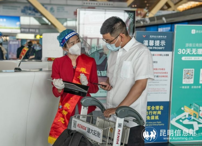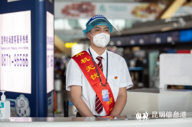 昆明機(jī)場(chǎng)工作人員秉承“首乘首幫”服務(wù)理念,即秉承首問(wèn)、首看、首幫的“真情服務(wù)”理念,為首次乘坐飛機(jī)的旅客提供一對(duì)一全流程引導(dǎo)乘機(jī)。