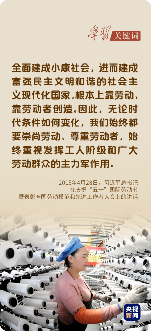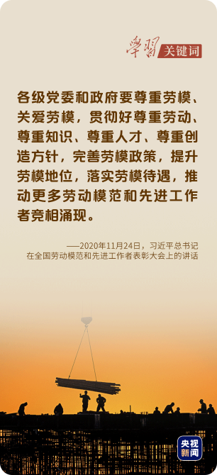 4月27日,“五一”國際勞動節(jié)到來之際,習近平總書記代表黨中央,向廣大技能人才和勞動模范致以誠摯的問候,向廣大勞動群眾致以節(jié)日的祝賀。