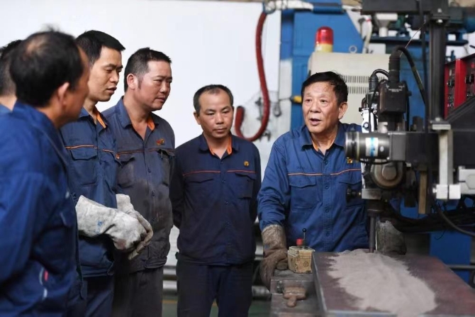 △艾愛國(右一)多次參與我國重大項目焊接技術(shù)攻關(guān),攻克數(shù)百個焊接技術(shù)難關(guān)。