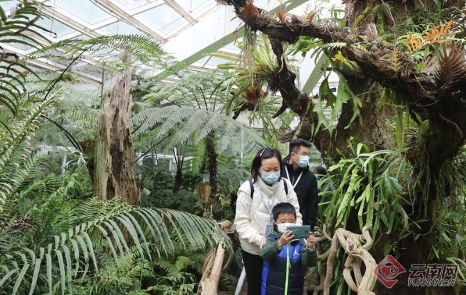 “五一”假日,春城市民走進(jìn)中科院昆明植物研究所昆明植物園“扶荔宮”,看主體溫室中的熱帶雨林、隱花植物、荒漠植物、以及爭奇斗艷的蘭花和神奇的食蟲植物……人們在科普參觀中探秘神奇的植物世界,感受生物多樣性之美。