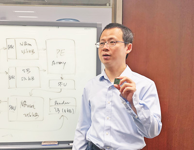 “做基礎(chǔ)研究,很多時(shí)候可能不知道該往哪里走。”回憶起那段時(shí)光,陳云霽感觸很深,“困難一個(gè)接著一個(gè),但問(wèn)題解決之后的喜悅是常人無(wú)法體會(huì)的。”2014年,他們研制的國(guó)際上首個(gè)深度學(xué)習(xí)處理器芯片與電腦主板成功連接,能效達(dá)傳統(tǒng)芯片的近百倍,成功實(shí)現(xiàn)預(yù)期目標(biāo)。陳云霽喜出望外,“踏踏實(shí)實(shí)睡了一覺(jué),然后又開(kāi)始下一個(gè)迭代?!?/p>