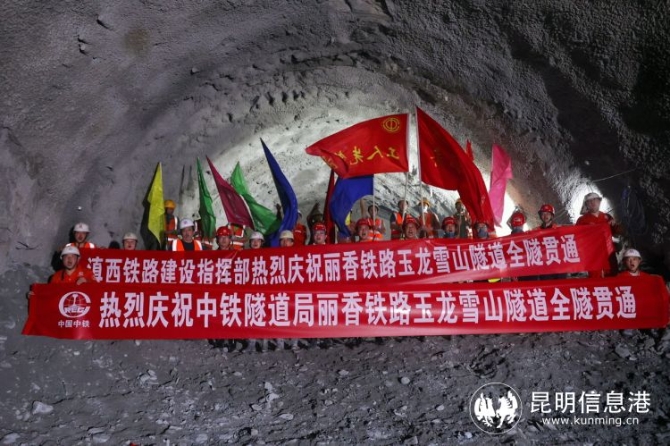 昆明信息港訊 記者上官艷君 記者從中國鐵路昆明局集團(tuán)獲悉,5月5日上午,經(jīng)過1000多名建設(shè)者的晝夜奮戰(zhàn),滇藏鐵路的重要組成部分、云南麗江至香格里拉鐵路玉龍雪山隧道安全貫通。至此,全線20座隧道已貫通19座,僅1座尚未貫通,為年內(nèi)開通運(yùn)營奠定了基礎(chǔ)。隧道攻克多項(xiàng)技術(shù)難題,為我國高原鐵路建設(shè)積累了經(jīng)驗(yàn)。