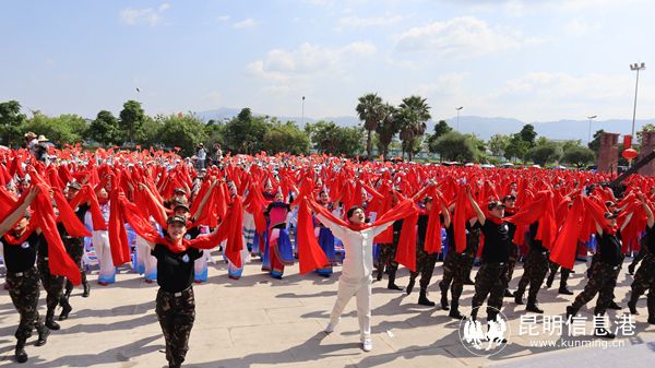 著名舞蹈家黃豆豆與云南蒙自市群眾共舞《幸福紅》