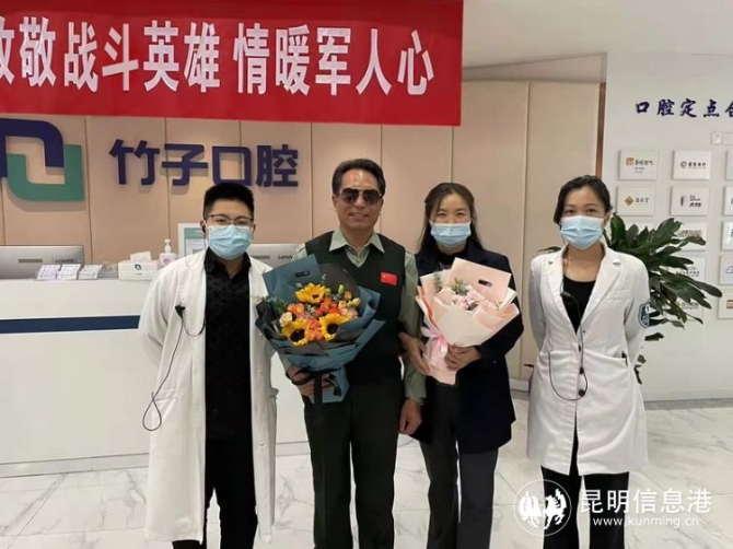 昆明信息港訊 記者江楓 通訊員周曉暉 5月5日上午,云南竹子口腔醫(yī)院組織了一場(chǎng)“致敬戰(zhàn)斗英雄 情暖軍人心”擁軍活動(dòng),并為戰(zhàn)斗英雄安忠文及其妻子提供了口腔健康免費(fèi)診療服務(wù)。