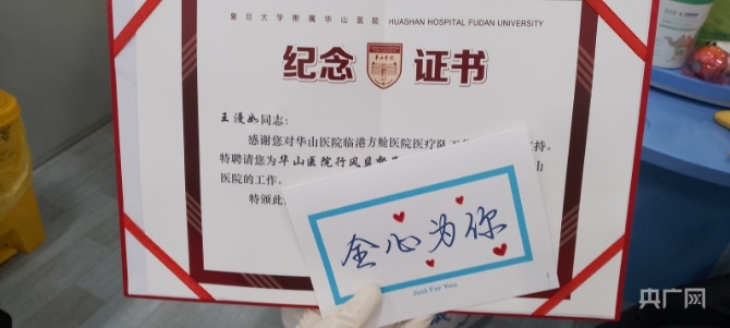 醫(yī)療隊(duì)員們還和王漫如老人做了一個(gè)約定,等到疫情退去,方艙關(guān)閉,脫下大白防護(hù)服再相聚。如今,王漫如老人正在老人公寓進(jìn)行居家健康觀察,華山醫(yī)院已經(jīng)聘請她日后擔(dān)任醫(yī)院行風(fēng)監(jiān)督員。