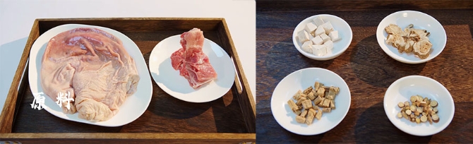 新鮮豬肚500克,排骨150克,黨參10克,白術(shù)6克,茯苓6克,甘草3克,姜、油、鹽適量。