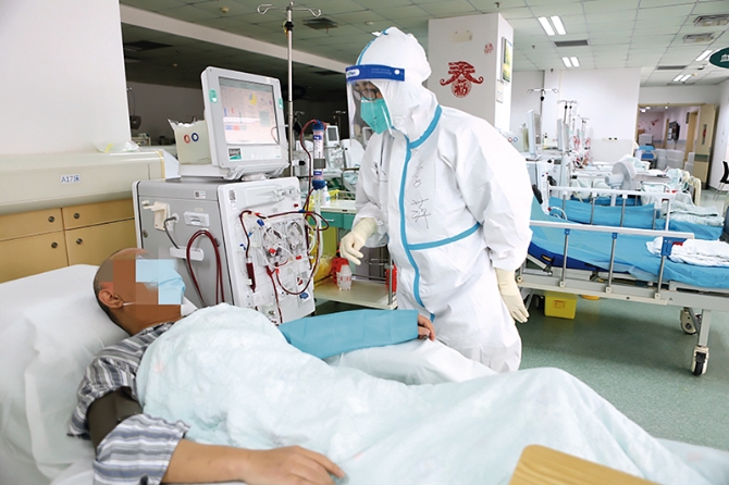 李萍說,對于新冠病人的救治,醫(yī)院有專門的病房收治,腎臟科主任每天會(huì)對這些病人查房,根據(jù)查房結(jié)果調(diào)整透析處方。